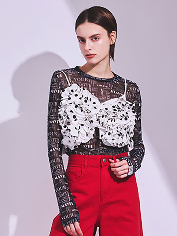 Printed Sheer Tulle Top