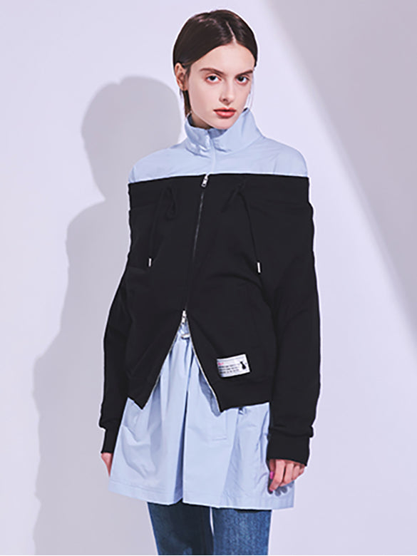 Bi-color Stitch Design Zipper Hoodie