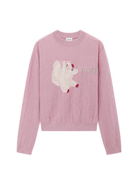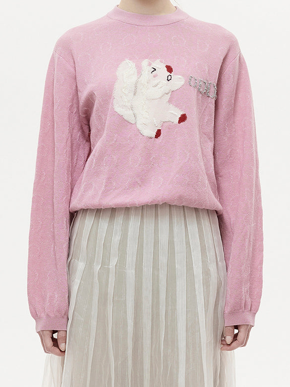 刺繍とビーズでキャッチーな動物柄をあしらった、大人ポップなニットトップス。上質なウール素材を使用。ほどよい緩さのシルエットが◎。