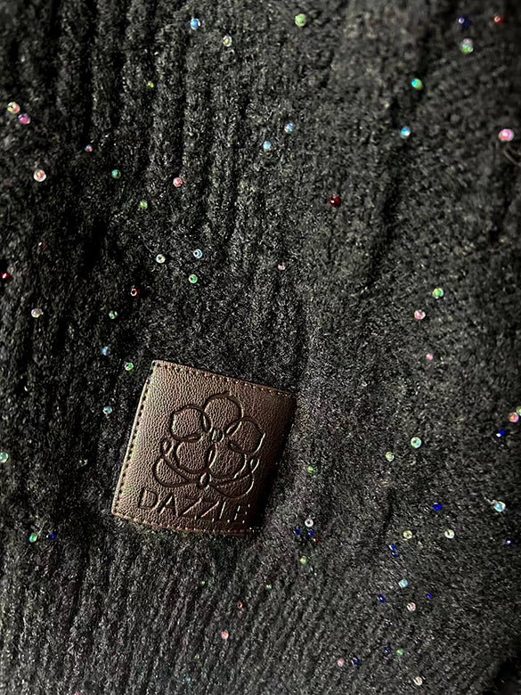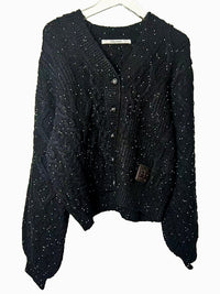 細かなビーズをあしらった、大人な雰囲気のニットカーディガン。ルーズな袖のシルエットバランスが◎。