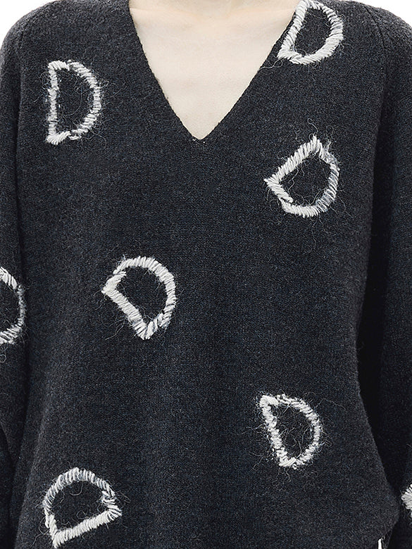 Dのロゴを刺繍であしらったデザインニット。Vネックで女性らしいシルエットに。