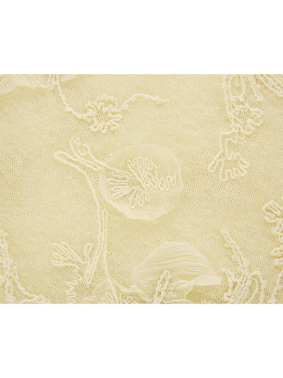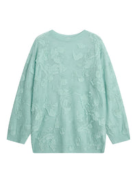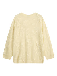 花柄のデザインニットは刺繍で立体的にデザイン。大人シックな印象に。