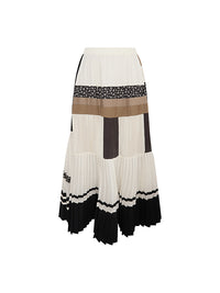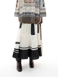 柄や色だけでなく、プリーツのピッチもランダムにデザインした技ありスカート。大人モードな一点。