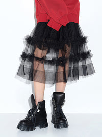 大人気のチュールスカート。今年は張りのある素材感のチュールを3枚重ねてボリュームのあるフレアラインに。ギャザーのデザインなどd'zzitらしいポイントも◎。ペチは取り外し可能。