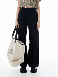 コード使いでパラシュートパンツ風にデザインしたデニム素材のカーゴパンツ。大人モードなカジュアルスタイルにおすすめの一点。