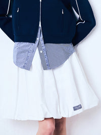 綿ナイロンの生地を使ったボリュームスカート。贅沢に用尺をつかっているのでガーリーなボリュームシルエットに。ブーツスタイルにもおすすめ。