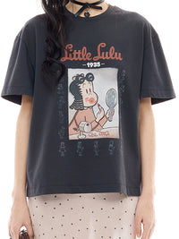 マージョリー・ヘンダーソンの短編コミック『Little LULU』とのコラボレーション。プリントに、ビーズや刺繍を重ねて立体的にデザインした、d'zzitらしいポップなTシャツ。ほどよくゆるめのシルエットで着やすい一点。