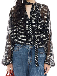 マージョリー・ヘンダーソンの短編コミック『Little LULU』とのコラボレーション。総柄プリントのシフォンブラウスは人気のボウタイデザインなので、ニットとのレイヤードにも◎。