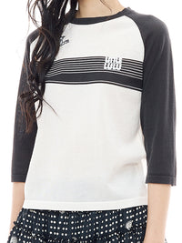 マージョリー・ヘンダーソンの短編コミック『Little LULU』とのコラボレーション。ラグランスリーブのレトロカジュアルなニットトップスは、刺繍でさりげなくあしらったキャラクターがアクセント。