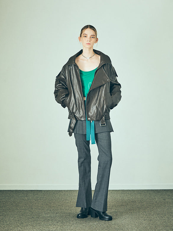 流行りのオフショルダーデザインのショートスウェットトップス。上質なミニ裏毛で着心地も◎。アシンメトリーに配置したプリントは、あえて同色プリントにすることでカジュアルになりすぎないようにデザイン。綾テープのリボンでウエストを絞ることでシルエットの調整可能。大胆なバルーンスリーブでモードな雰囲気と女性らしさもプラス。シアートップスやシャツとのレイヤードにもおすすめの一点。日本限定販売アイテム!