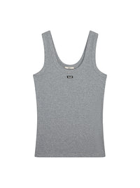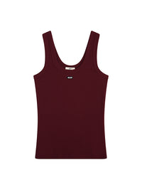 ベーシックなタンクトップ。ブランドロゴのワンポイントがアクセント。