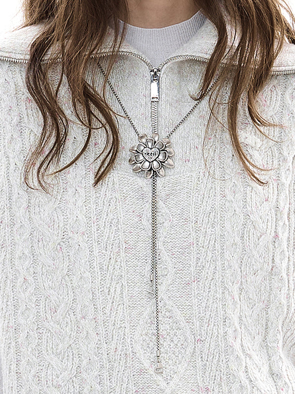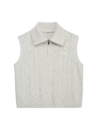 Thin Cable Zipper Sleeveless Knit