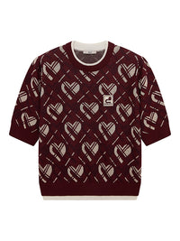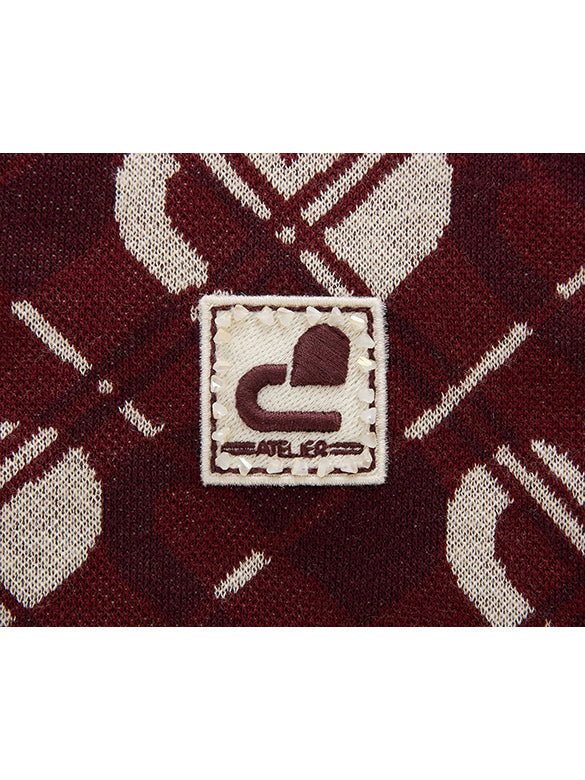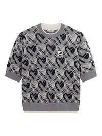 dのモノグラム柄にバイアスのチェックをからめた柄ニットトップス。レトロポップな雰囲気のニットはインナーでも活躍の一点。