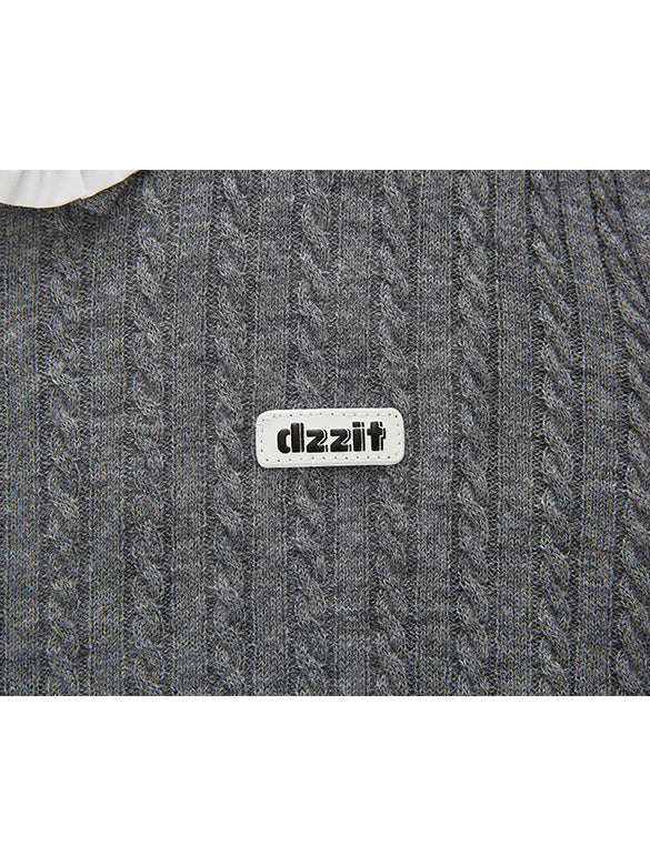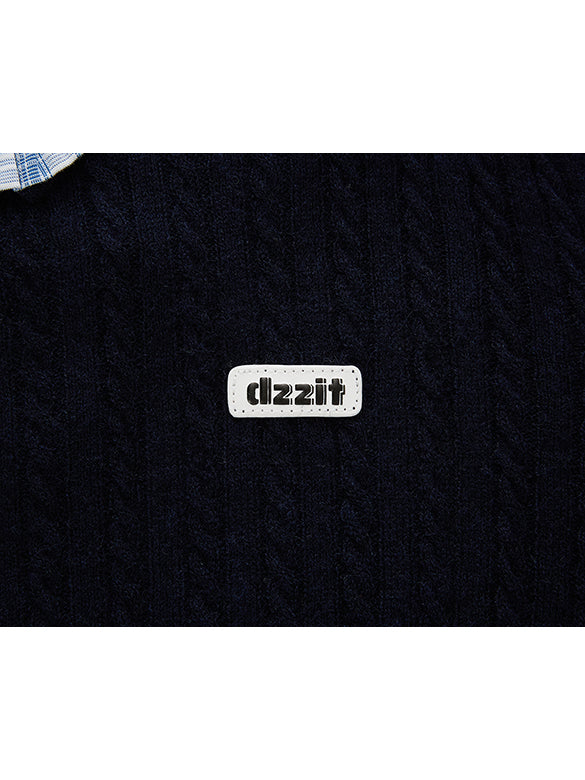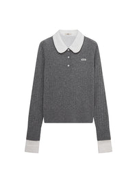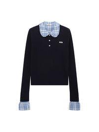 ポロニットにブラウスをレイヤードしたデザインニットトップス。一枚でフェミニンなレイヤードスタイルになる便利な一点。