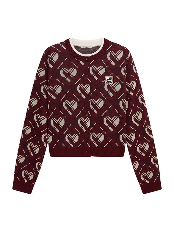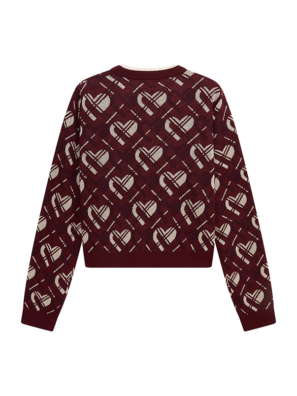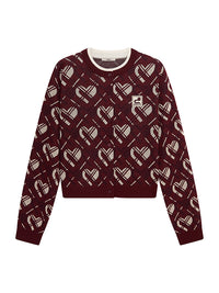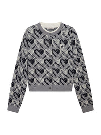 dのモノグラム柄にバイアスのチェックをからめた柄ニットカーディガン。レトロポップな雰囲気のニットはトップスとしても活躍の一点。