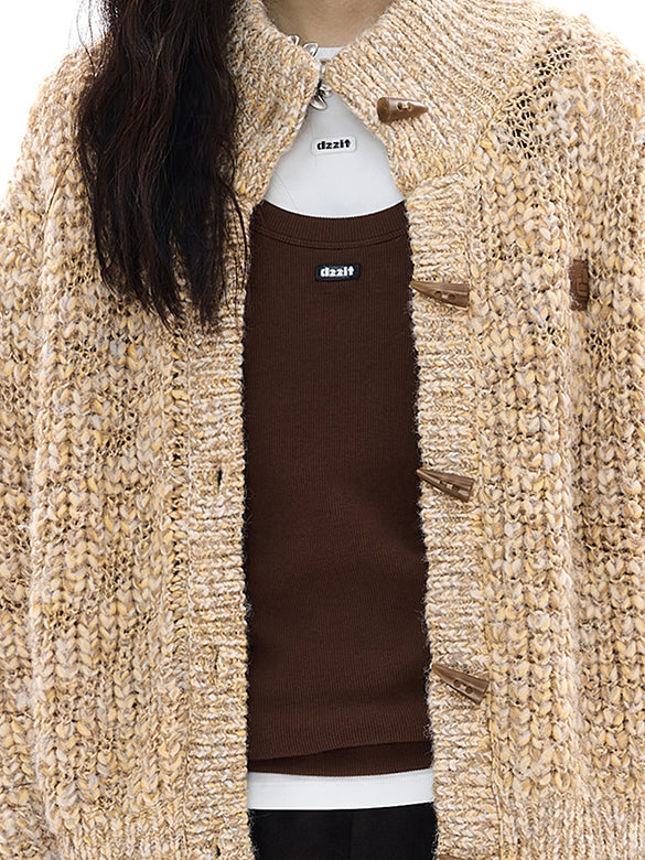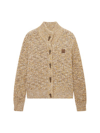 杢ニットを使ったカーディガンは、トグルボタンを使ったトラッドカジュアルな一点。スタンドカラータイプでニットアウターとして使いやすい一点。