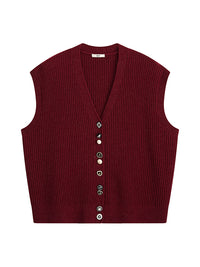 様々なデザインボタンをあしらったニットベスト。インナー使いでも存在感のある一点。