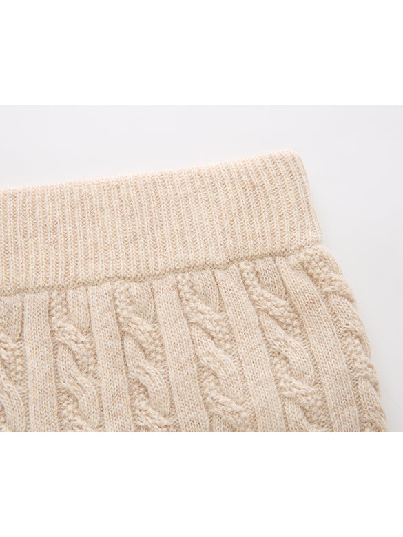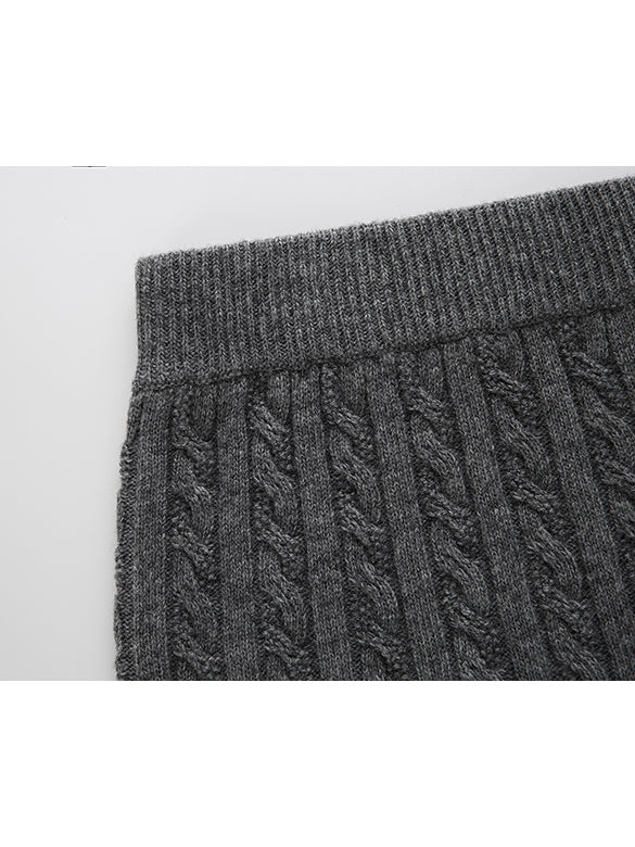 ストライプ状のデザイン編みのニットスカート。タイトなシルエットでセットアップでもボリュームアウターとのコーデにも◎。