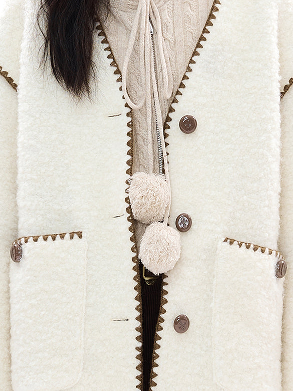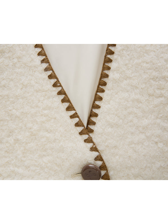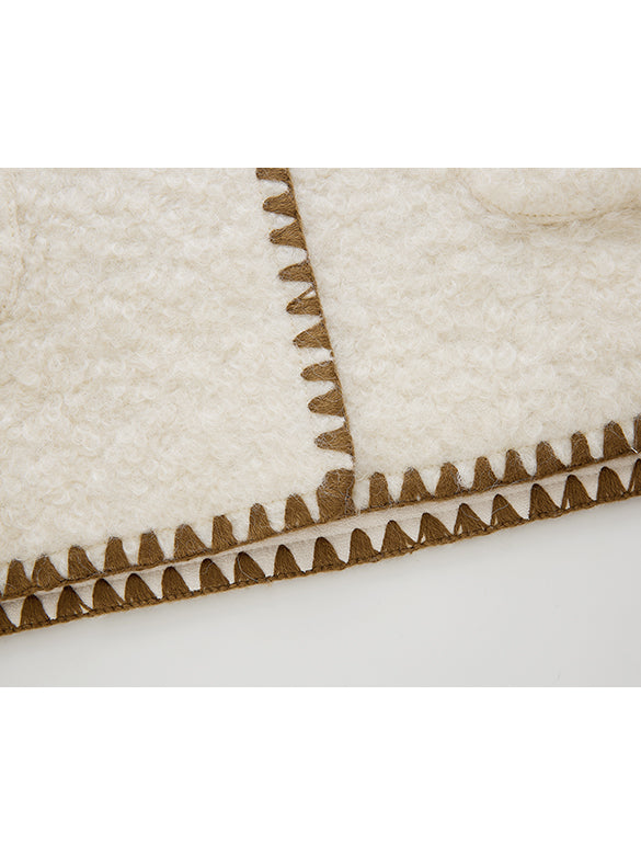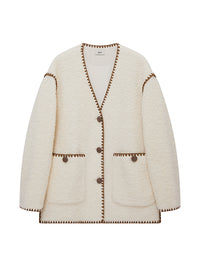 配色ステッチが効いたボア素材のハーフコート。裏付きなので防寒性も◎。
