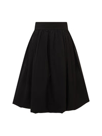 中綿のタフタスカート。張りのある素材感と中綿のボリュームで冬のコーデにおすすめの一点。