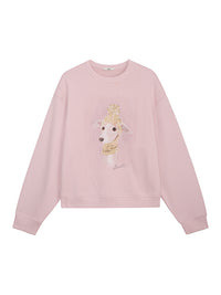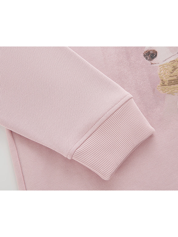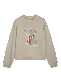 油絵風の犬のプリントがかわいらしいスウェット。さりげないビーズ使いなどもアクセントに。