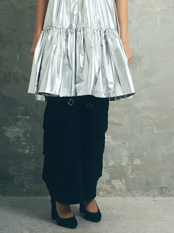 こだわりのデザインをほどこしたパラシュートパンツ。美脚シルエットとカーゴのカジュアルデザインのバランスが◎。