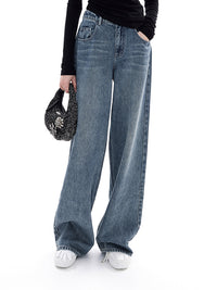 クリアビーズをあしらった、d'zzitらしいデザインデニム。はきやすいルーズシルエットのデニムにクリアビーズがアクセントに。