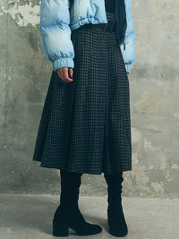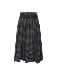 チェックのプリーツスカートは長めの丈でクラシカルな雰囲気に。ベルト付きなのも嬉しいポイント。