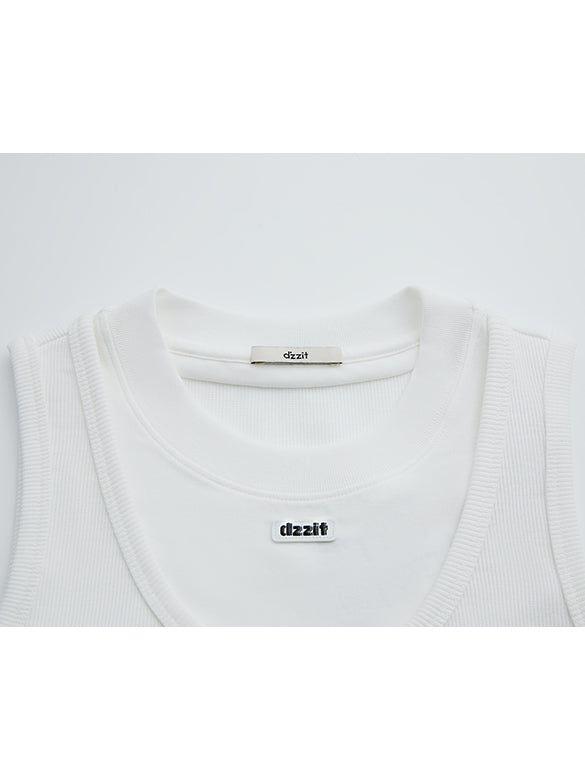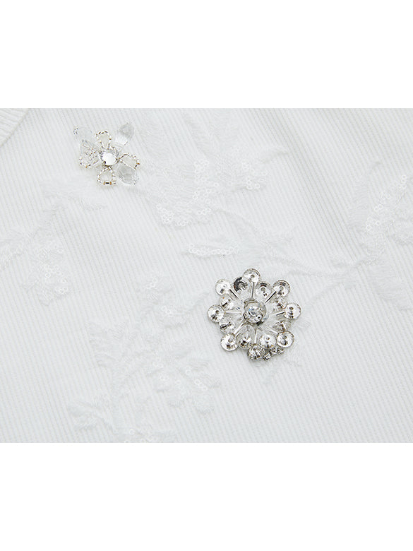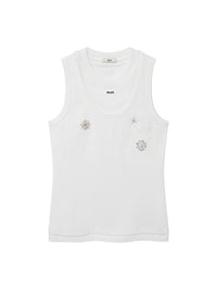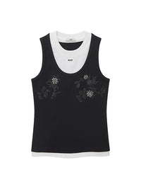 一枚でレイヤード風にデザインされたタンクトップ。刺繍とビーズで立体的なデザインをプラス。【品番】3K1AA04
