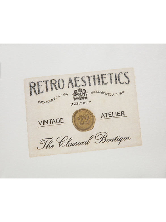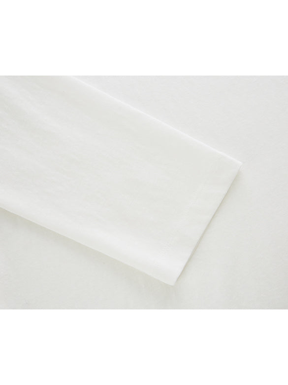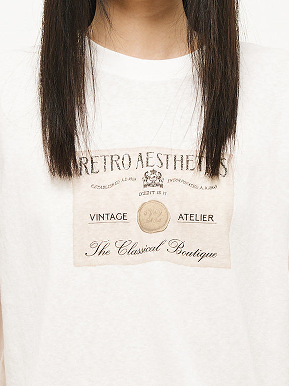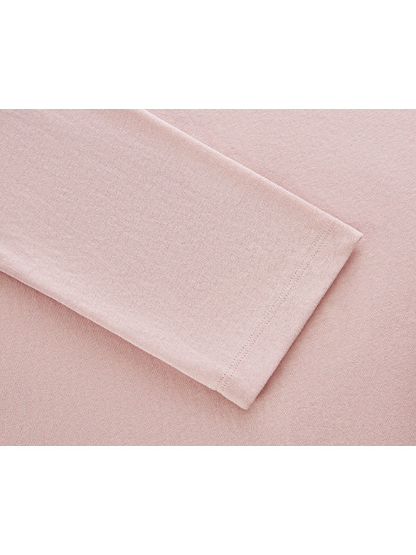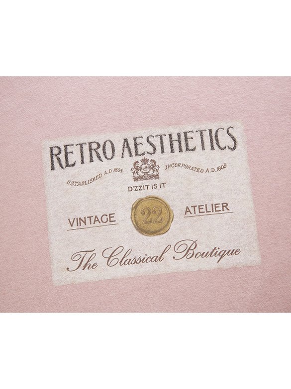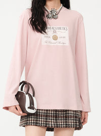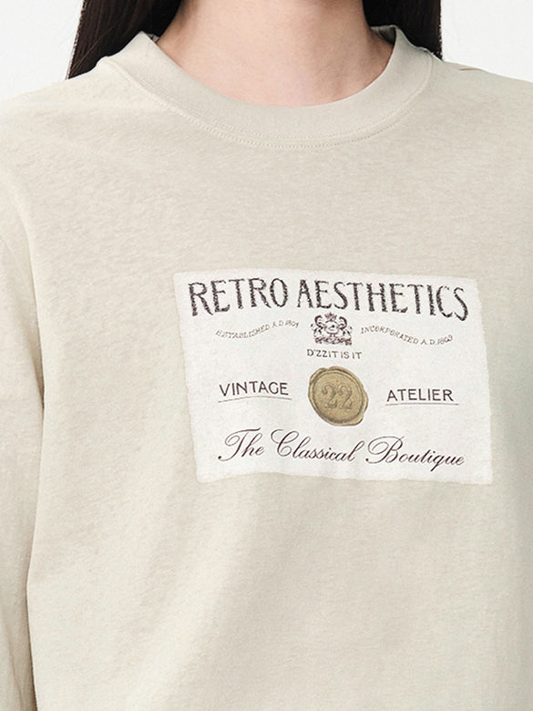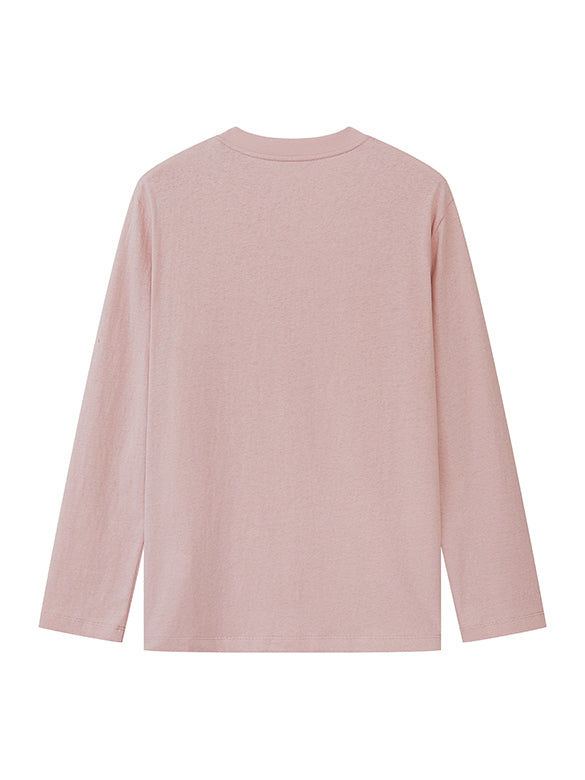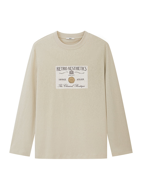 レトロなプリントにビーズを施したシンプルなロンT。春カラーで着回しの良い一点。