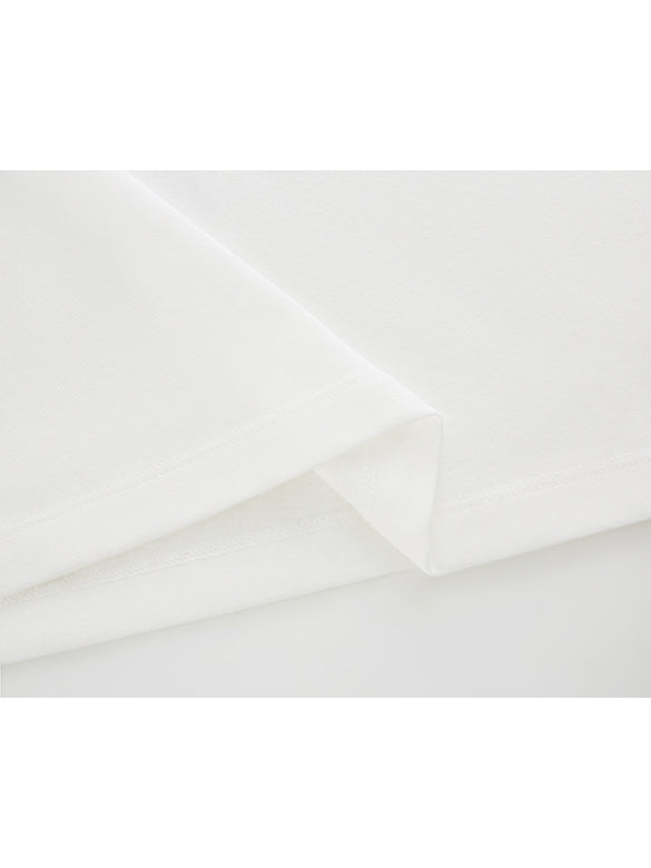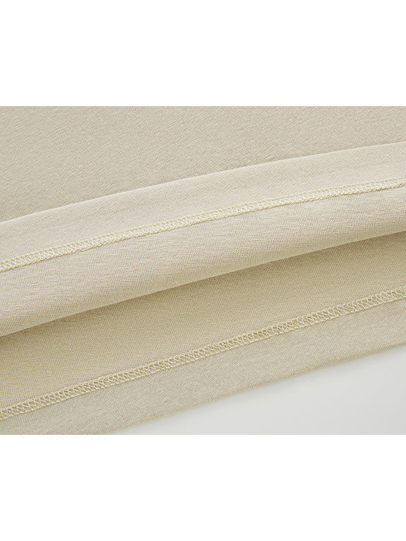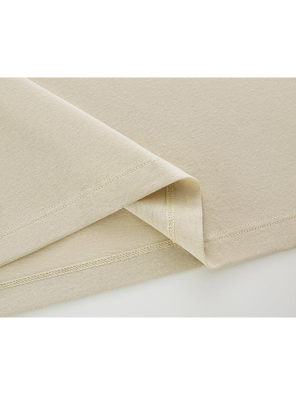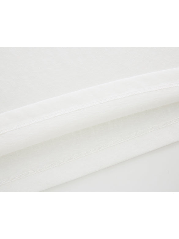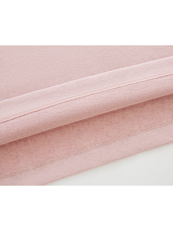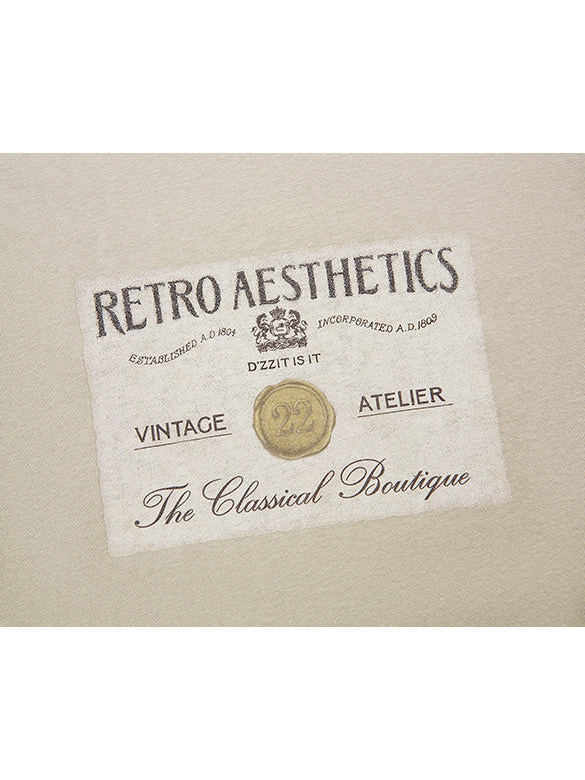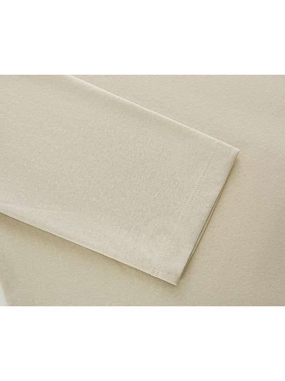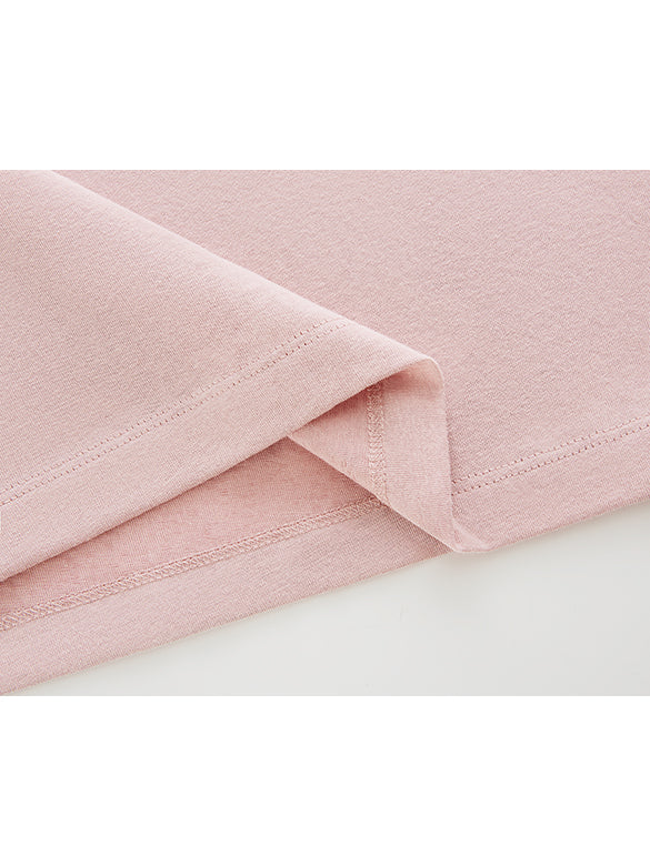 レトロなプリントにビーズを施したシンプルなロンT。春カラーで着回しの良い一点。