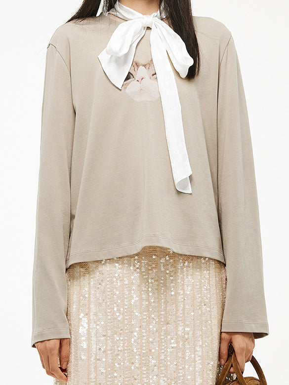 Cat Printed Long-sleeves T-shirt
