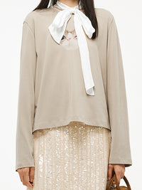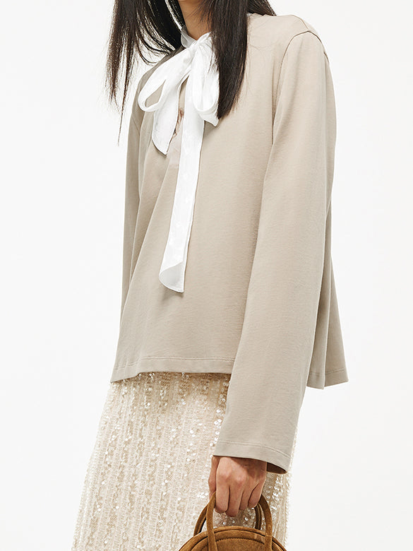 可愛らしい猫のプリントが際立つロンTは、ビーズ使いのアクセントが◎。