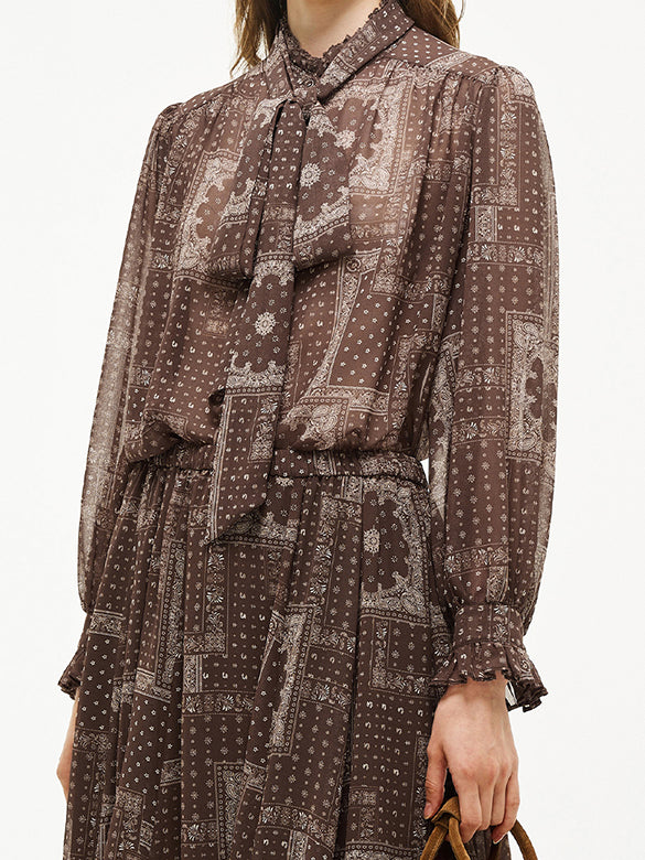 Geometric Printed Bow-tie Chiffon Blouse