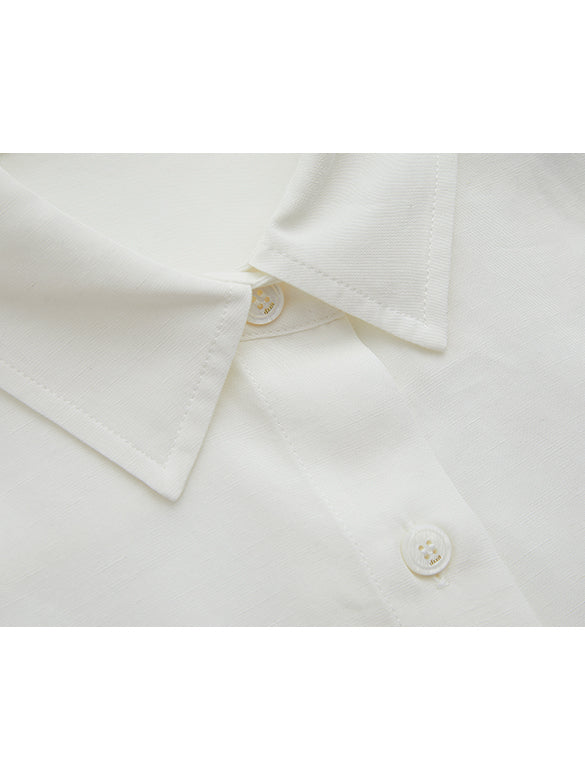 ウエストを絞ったデザインシャツ。軽い素材感で着心地も◎。