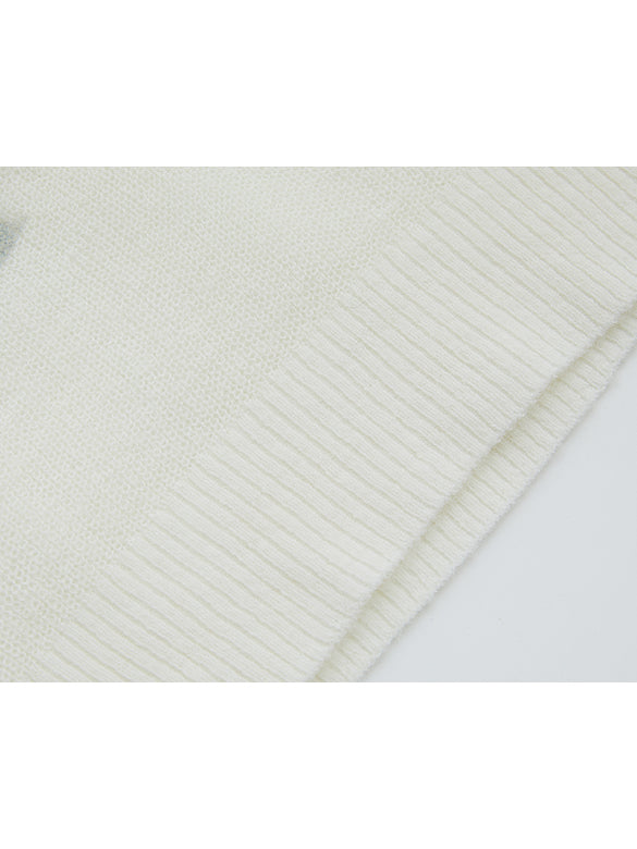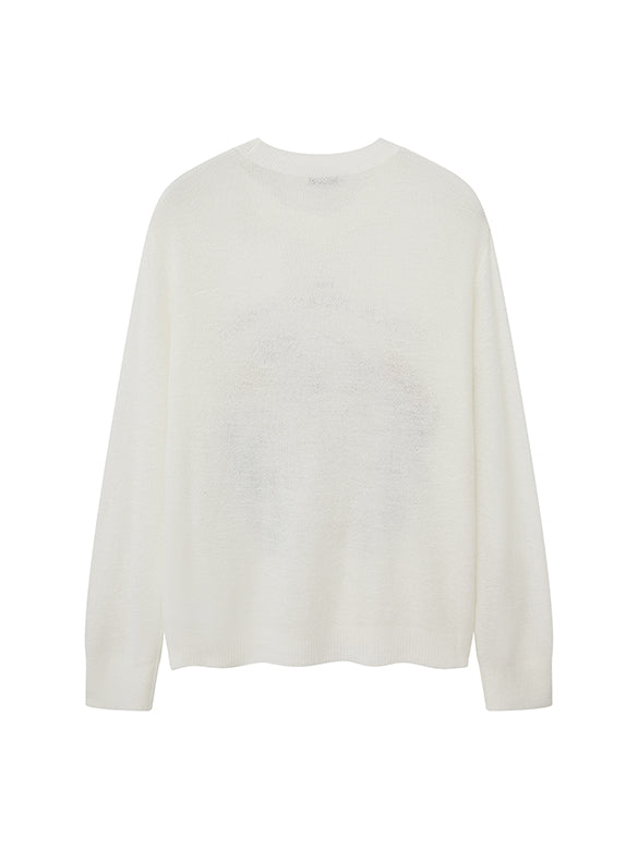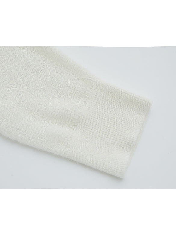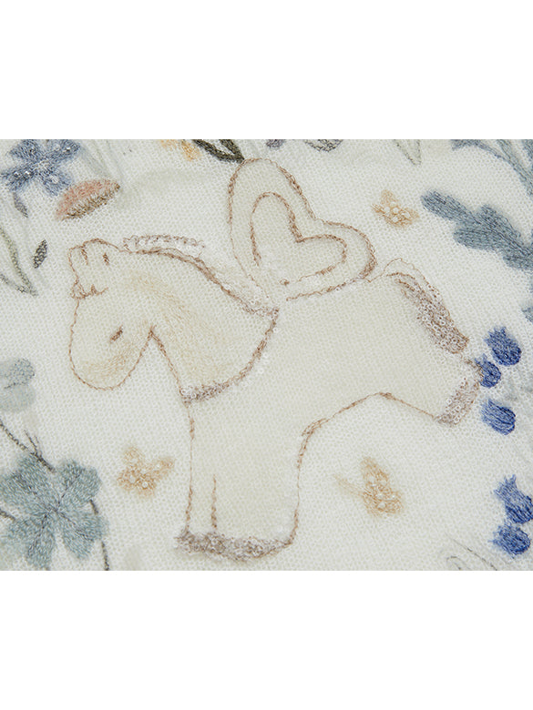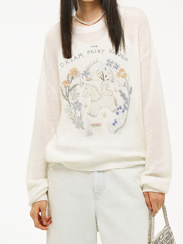 モヘア混のニット地に刺繍でユニコーンをシアーニット。レトロな色合いとデザインが◎。【品番】3K1EE49