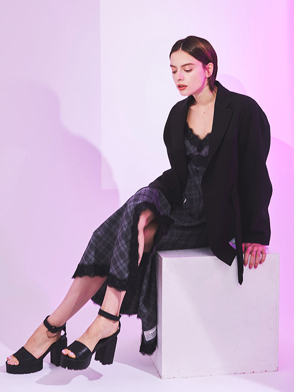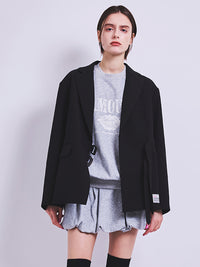 上質で柔らかい落ち感のある生地を使った、流行りのダブルのテーラードジャケット。ややオーバーサイズシルエットで今風のシルエットに。二重のバックルベルトで留めるデザインがインパクト大。袖口もスライダーでフレアラインにアレンジ可。大人カジュアルなスタイリングに。
