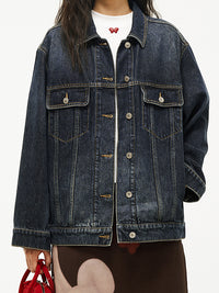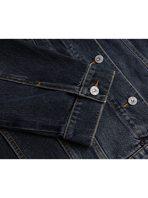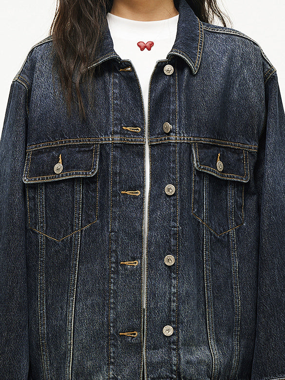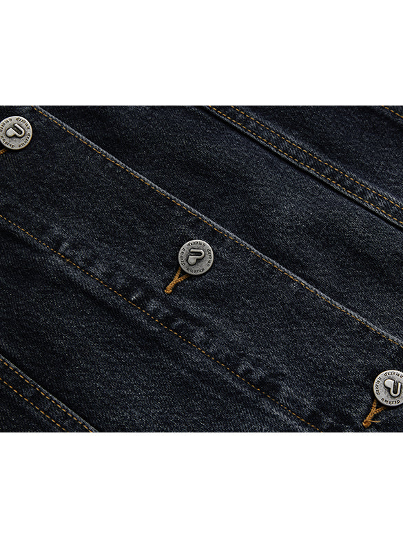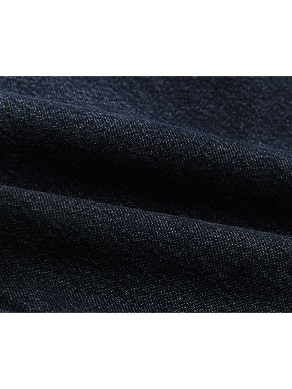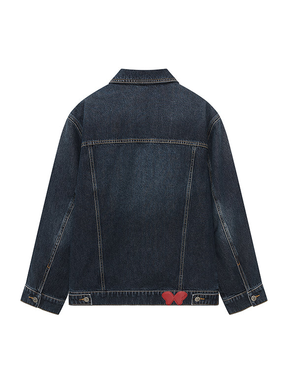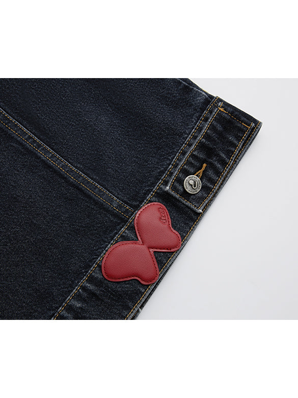 シンプルなリジッドデニムは、腰にあしらった蝶々のレザーのパッチがアクセントに。
