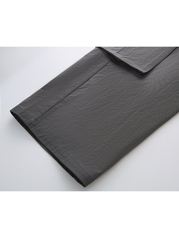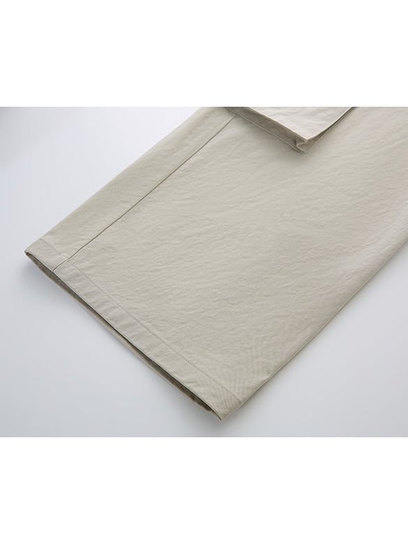 シンプルなカーゴパンツはトレンドのアイテム。ウエストゴムでギャザーが入るのもポイント。