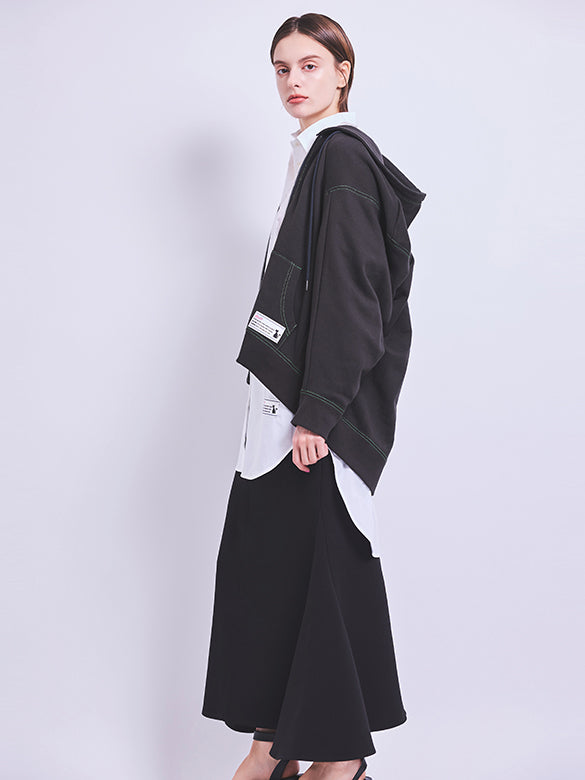 人気のロングスカートは、スタイルをよく見せてくれる変形マーメイドシルエット。特徴的なパターンでオリジナリティあふれる一点。上質で柔らかい落ち感のある生地でシルエットも抜群の一点。サイドにあしらったダブルのバックルベルトがアクセントに。