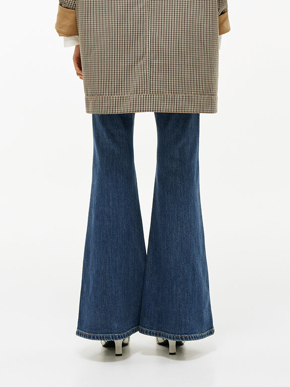 デニムのベルボトムは、極端なシルエットで美脚効果も◎。