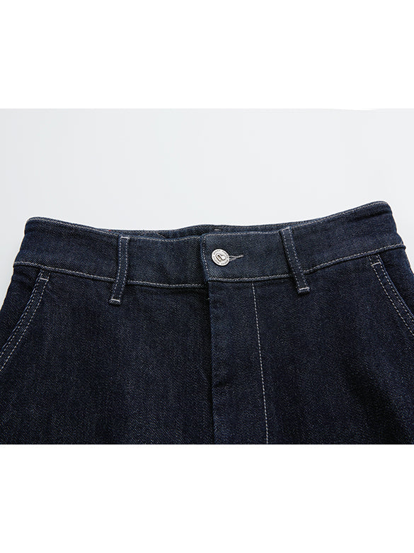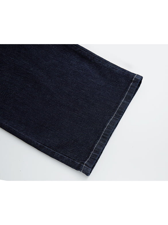 少し緩めのシルエットのリジッドデニムパンツ。蝶々のレザーのパッチがアクセント。