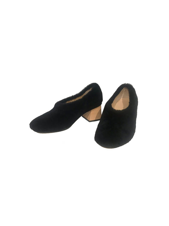 ファ-パンプスはトレンドの一つ。シンプルなコーディネートも足元のオシャレでワンランク上に。しっかりしたリフトで安定感も◎。